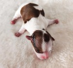 Hündin 2: rotzobel-weiß gefleckt, dzt. res. Winter
