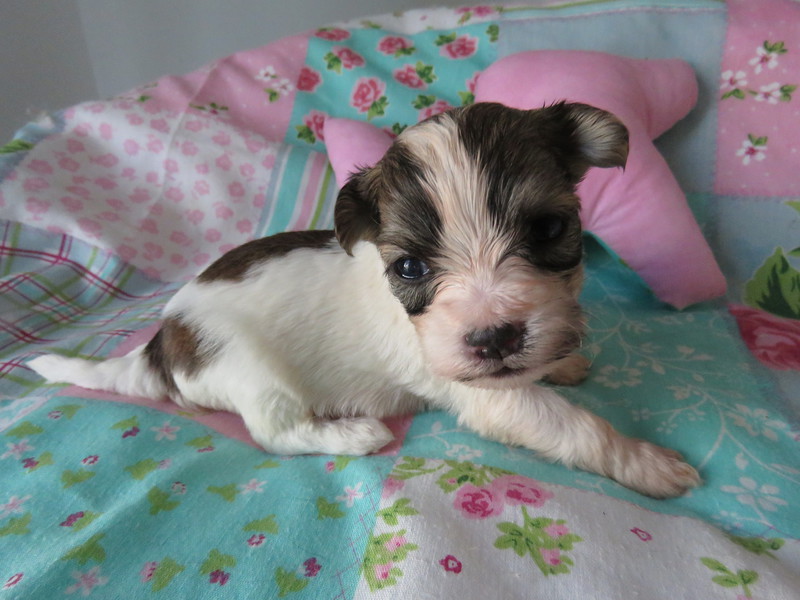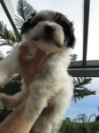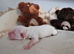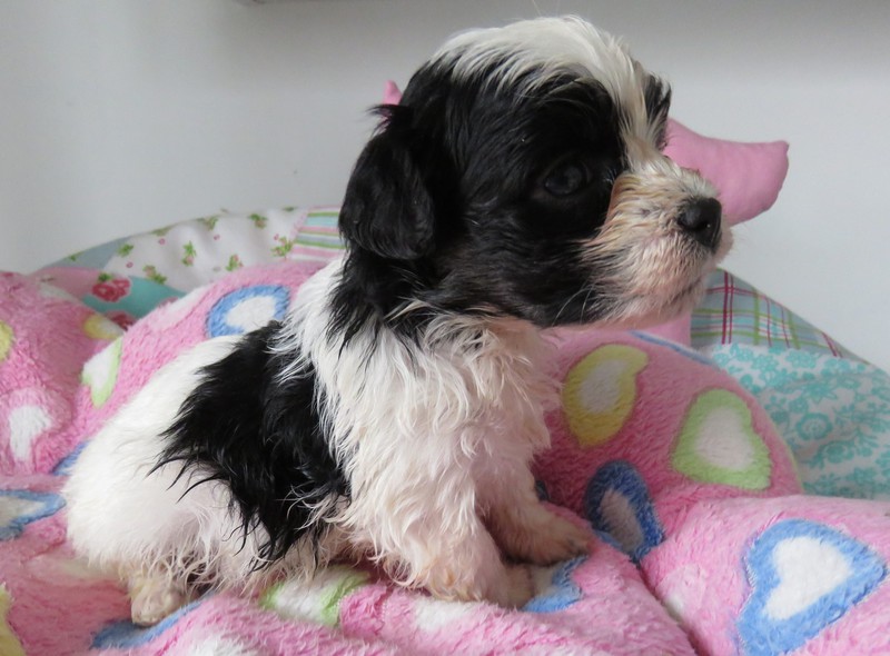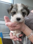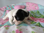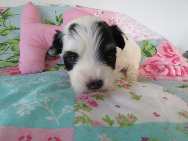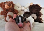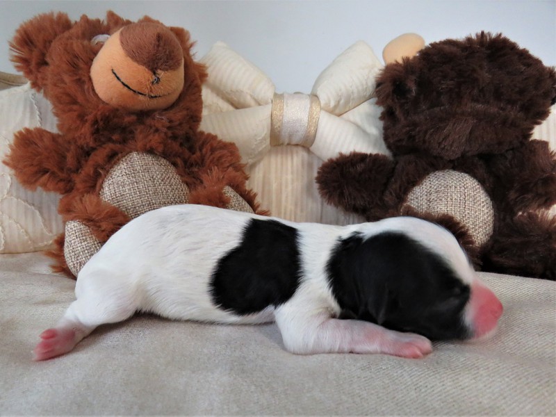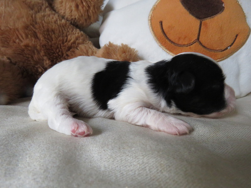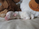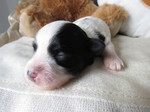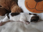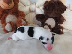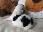 Hündin 6: Ophelia, 170g, weiß mit schwarz gefleckt, vergeben Gruber