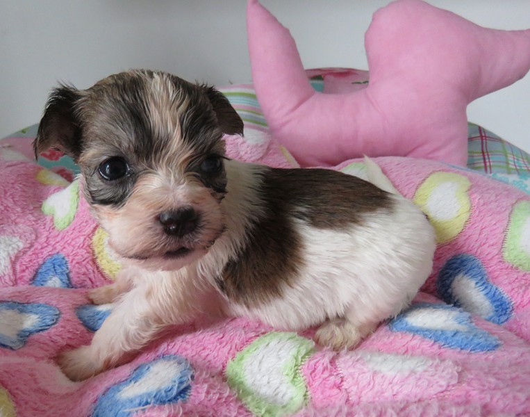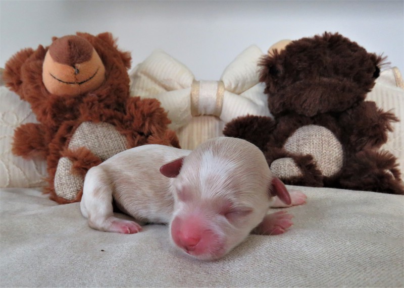 Hündin 3: Onja, 130g, weiß mt rotzobel gefleckt, vergeben Ostanek