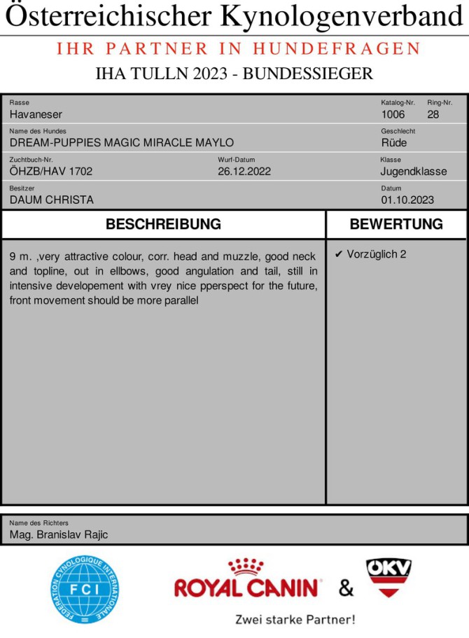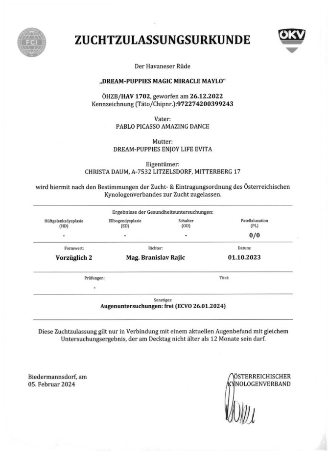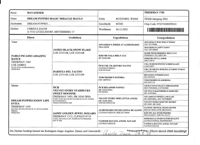 Maylo ist der Sohn von Evita und Pablo Picasso, geboren am 26.12.2022 in Litzelsdorf.
