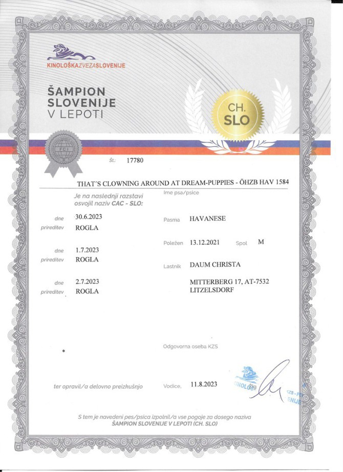 Ausstellungenserfolge: CH SLO